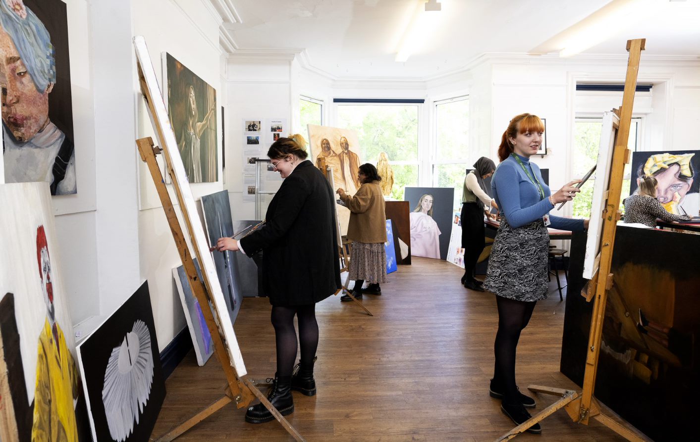 Fine Art requires engagement with aesthetic and intellectual concepts, through the use of traditional and/or digital media, materials and techniques for the purpose of self-expression. Fine Art may be created to communicate ideas and messages about the observed world, the qualities of materials, perceptions, or pre-conceptions. It can also be used to explore personal and cultural identity, society, and reflect on our place in the world. Disciplines within Fine Art This qualification is sub-divided into the following four disciplines: painting and drawing, printmaking, sculpture, and lens-based image making. Students will be required to work in one or more of the disciplines to communicate their ideas. By working across disciplines, they will extend their understanding of the scope of Fine Art; by focusing on one discipline, they will gain a deeper understanding of specific processes within Fine Art. Course Content Year 12 Personal Investigation All work produced on the course will become part of your portfolio submission. The first year of the qualification focuses on exploring and developing new techniques and materials. For this we use the starting point of viewpoints as a theme, this enables students to begin exploring personal ideas for portfolio development. Year 13 Personal Investigation/Personal Study The second part of the course builds on the personal investigation based on differentiated themes and contextual sources. Incorporates three major elements: supporting studies, practical work, and a personal study. Supporting studies and practical work comprises of a portfolio of development work and outcomes based on themes and ideas developed from personal starting points. The personal study will be evidenced through critical written communication showing contextual research and understanding in a minimum 1,000 words of continuous prose, which may contain integrated images. Component 2 – Externally Set Assignment Incorporates two major elements: preparatory studies and the 15 hour period of sustained focus. Preparatory studies comprise of a portfolio of practical and written development work based on an externally set theme. During the 15 hour period of sustained focus under examination conditions, students will produce final outcome(s) extending from their preparatory studies in response to their own interpretation of the theme. This Assignment is released on 1 February and contains a theme and suggested starting points. Students will have until the 15 hour period of sustained focus to develop their work. Is this course right for me? This course is ideal if you have an interest in Art and Design and would like to develop your practical and creative skills further. It is also suitable if you would like to add breadth to your other academic choices at A level. Course highlights During the course you can participate in a variety of gallery trips. We provide opportunities to exhibit your work and enter national competitions, and curate exhibitions . There are also a rich variety of extra-curricular activities on offer. What can I do next? The study of Art and Design at this level can lead to further study of Art on a Foundation Course, or direct entry onto a Degree Course. Examples of degree courses leading to possible future careers, include Fine Art, Architecture, Interior Design, Graphic Design, Fashion and Surface Pattern Design, Painting and Printing, and a range of combined courses. If you are considering a career in any area of Art and Design, you are strongly advised to study Art at A level. Doing so will mean that you will be more confident visually, and you are therefore likely to be far more successful in your chosen field. Subject minimum entry requirement Grade 6 or higher at GCSE in an Art and Design qualification. “Fine Art at QEGS has given me an opportunity to freely express myself and explore a means of learning about history, culture and to an extent myself. With the easily accessible abundance of materials, even digital programmes like Photoshop. it is impossible not to love the opportunities we are given to experiment and create. We are also fortunate enough to have an amazing team of teachers with expertise and genuine care for each student’s personal development who support us in our creativity unconditionally. With amazing staff, high quality materials and a beautiful space to work in, this course is perfect for those wishing to study Art.” “Art has allowed me to freely develop my skills over several types of media. The way that Art is taught at QEGS also gives students a clear understanding of the foundations of the subject, such as knowing about formal elements, whilst also giving them the chance to experiment and show their creativity.”